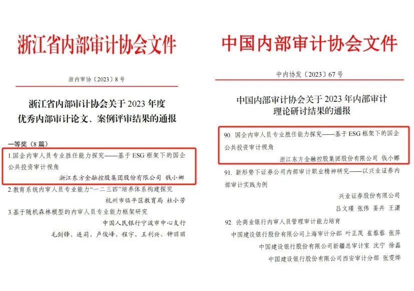 國(guó)有企業(yè)內(nèi)部審計(jì)是現(xiàn)代企業(yè)治理的重要力量,高質(zhì)量的審計(jì)監(jiān)督是驅(qū)動(dòng)國(guó)企公共投資踐行可持續(xù)發(fā)展理念的重要保障。浙江東方積極響應(yīng)監(jiān)管要求,致力于ESG方面的研究,以國(guó)企內(nèi)審人員專(zhuān)業(yè)勝任能力為研究對(duì)象,結(jié)合國(guó)企公共投資及ESG監(jiān)管特性,探尋內(nèi)審人員在應(yīng)對(duì)全新ESG風(fēng)險(xiǎn)的綠色時(shí)代應(yīng)具備的能力框架及優(yōu)化路徑,進(jìn)一步提升國(guó)有企業(yè)公共投資審計(jì)效能,推動(dòng)國(guó)企公共投資踐行可持續(xù)發(fā)展理念。